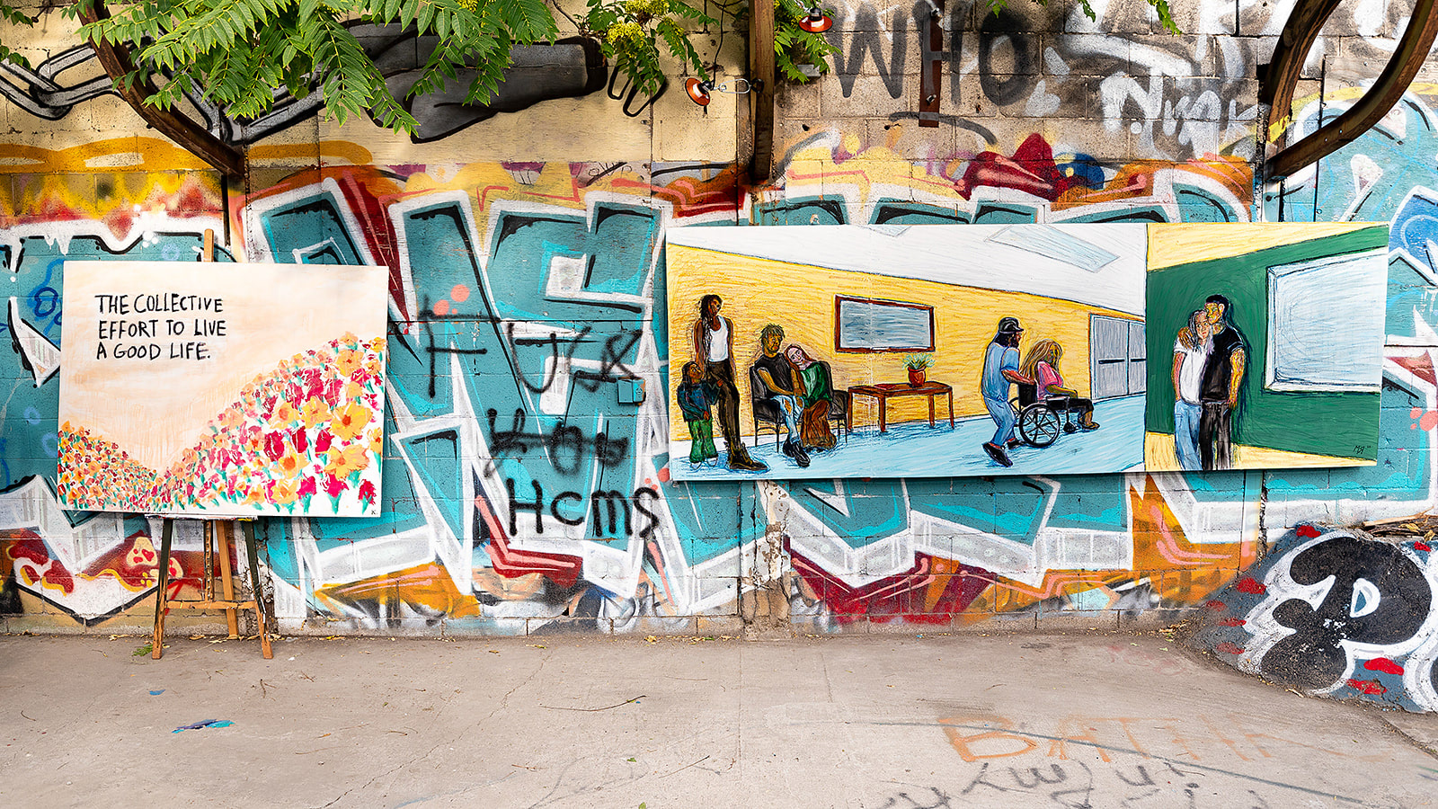 "Waiting Room" & "Healing is an Art Form" pictured on display at the Embrace the Void Charity event in September of 2023