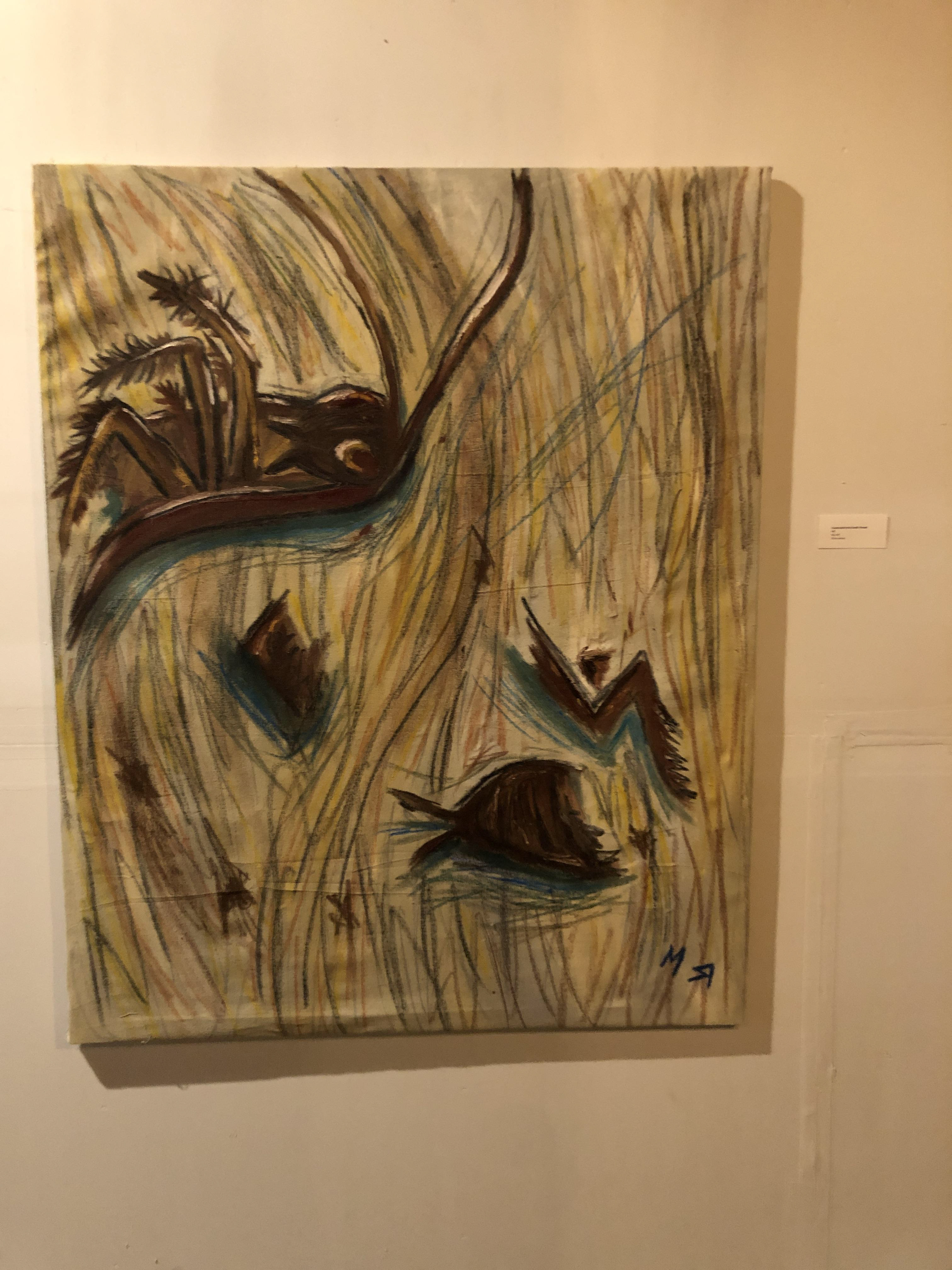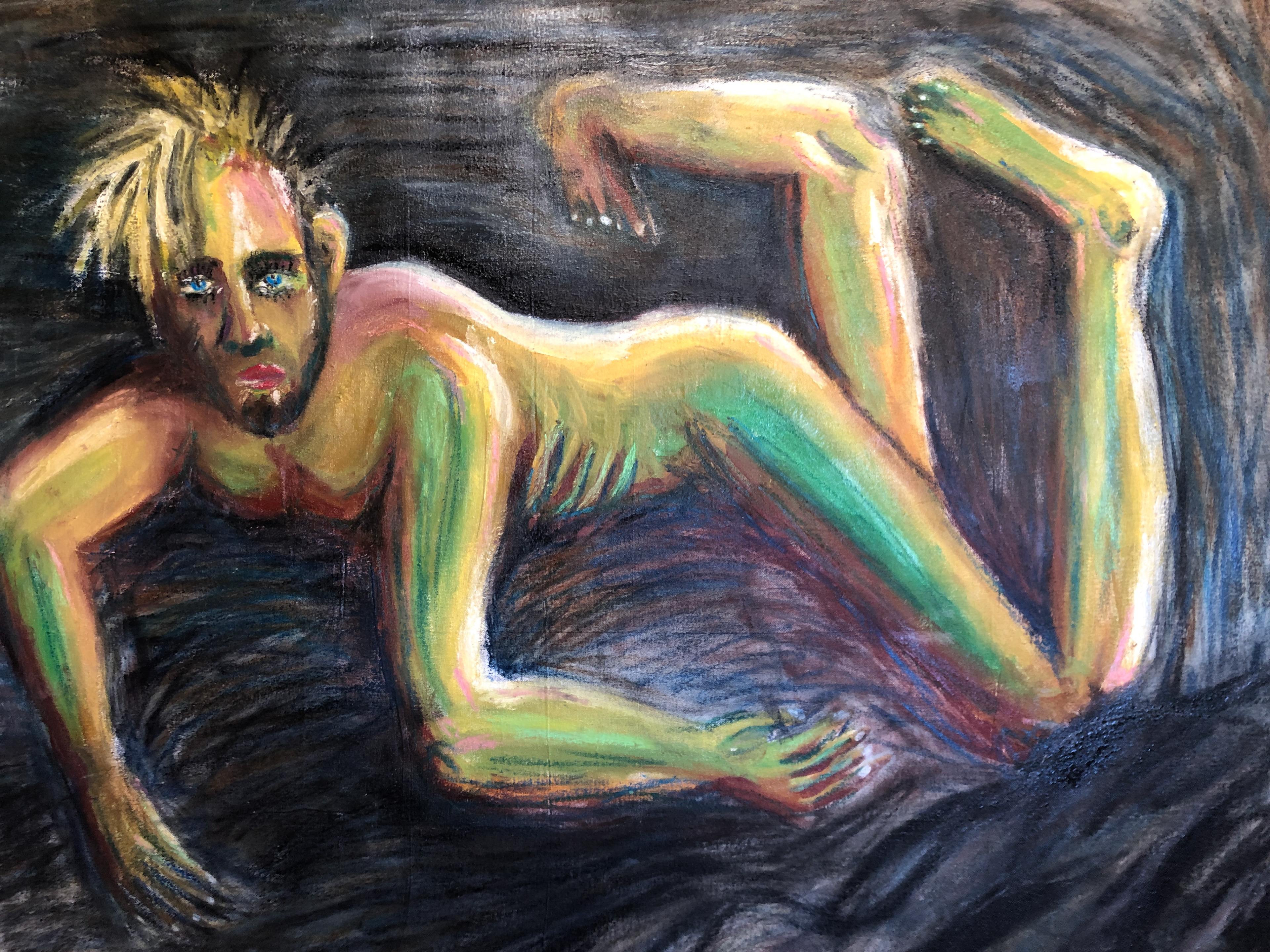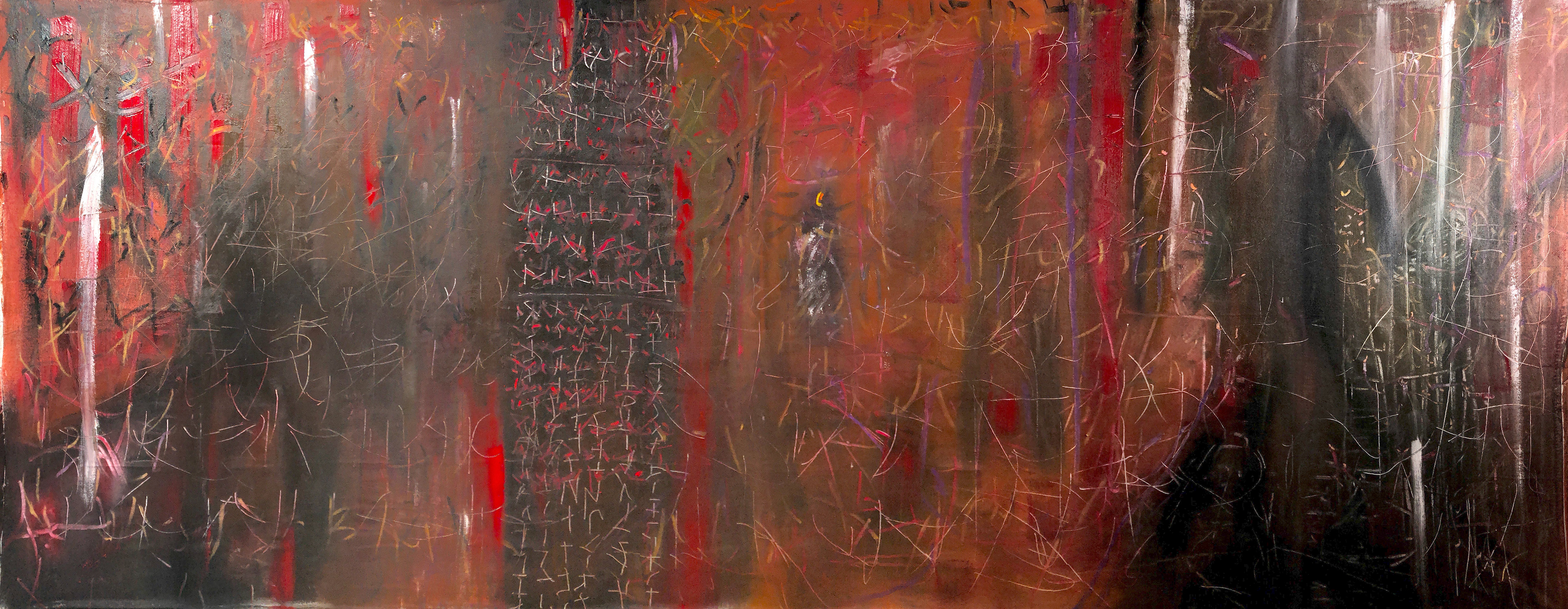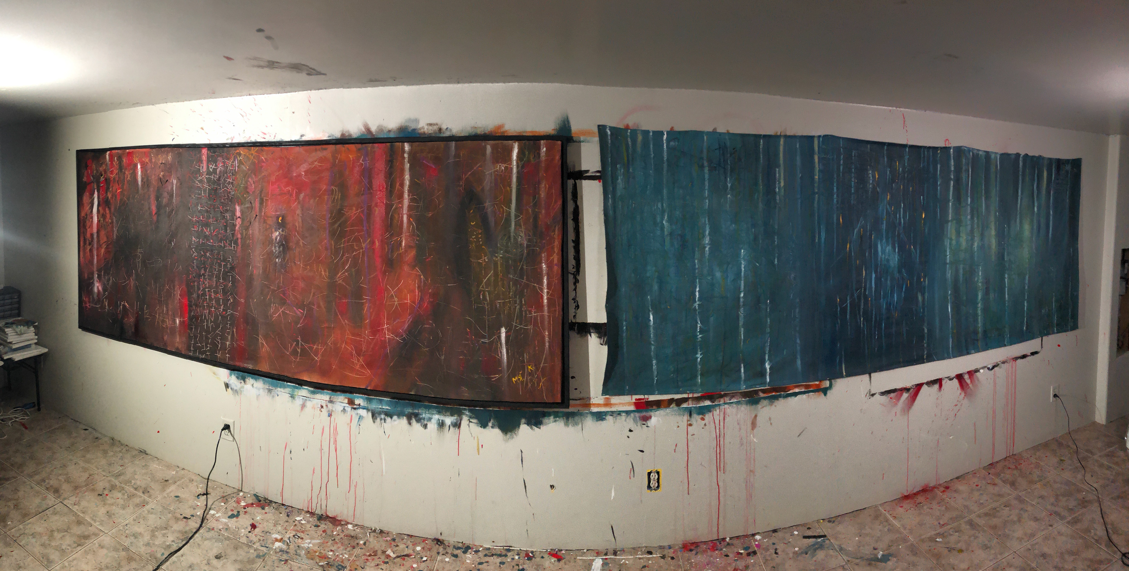 oil, acrylic, and oil pastel on Canvas 9x4ft