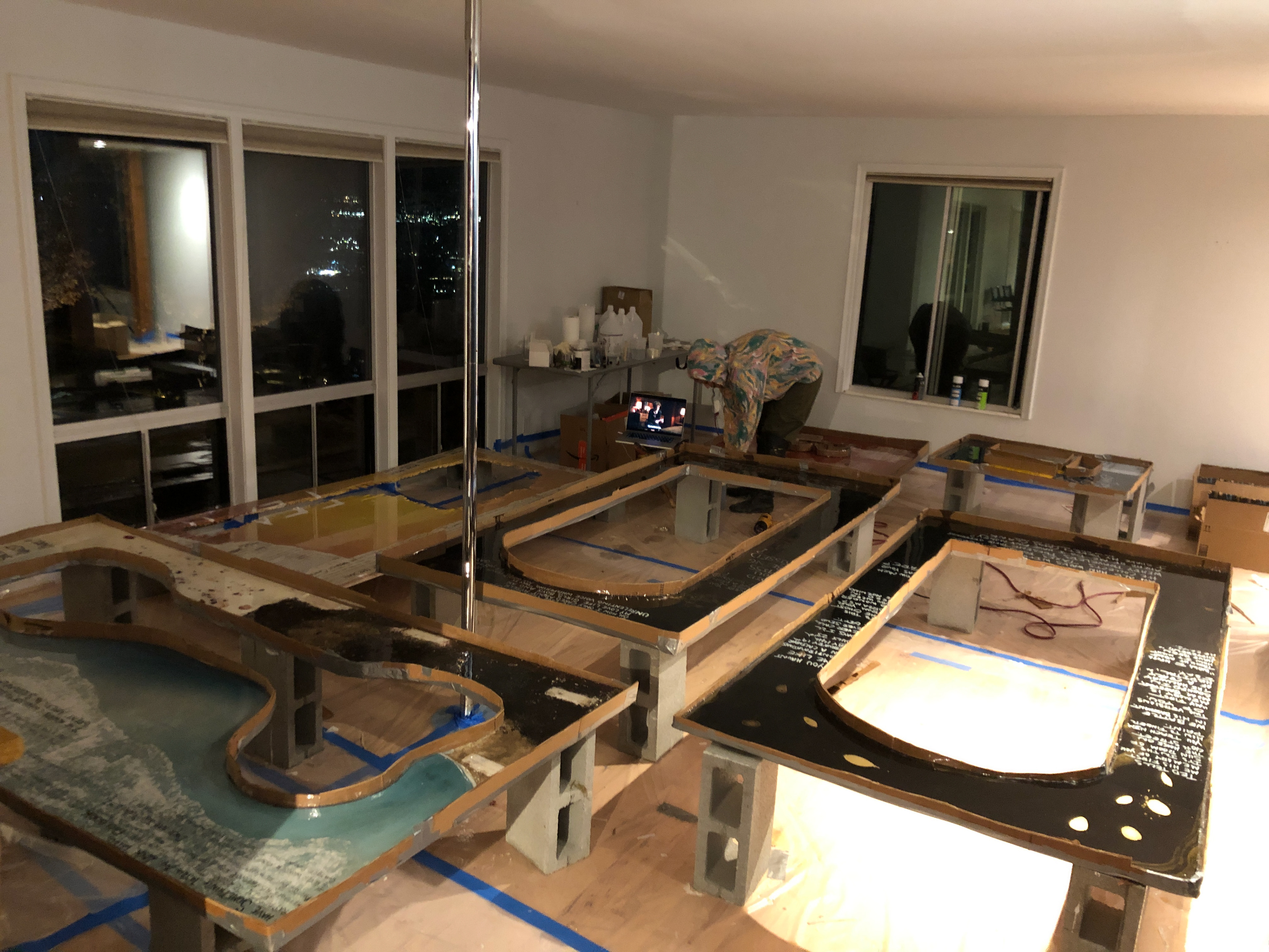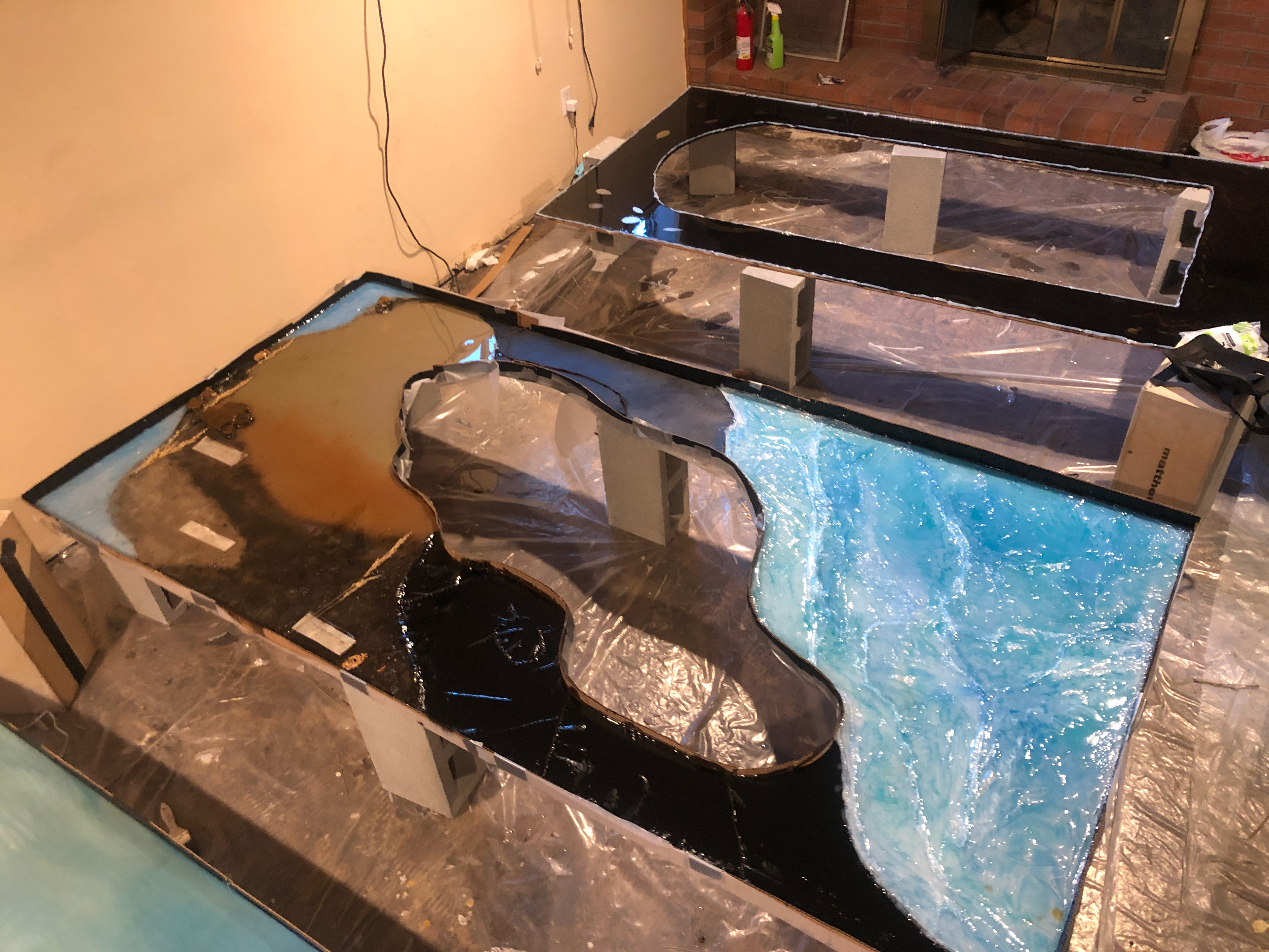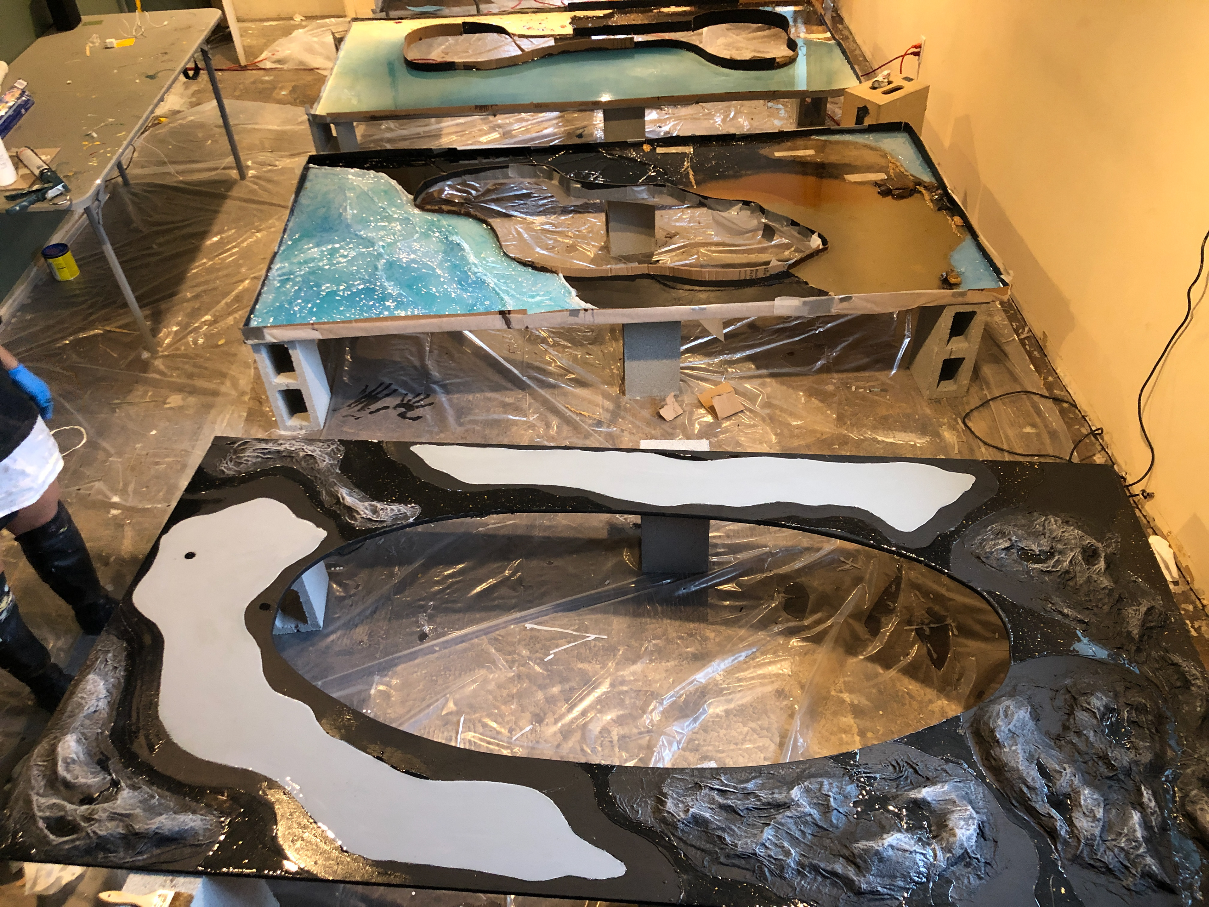 Conceptualization & fabrication of 11 unique epoxy/resin artworks. Individual sizes range from 2.5x3ft to 8x4ft